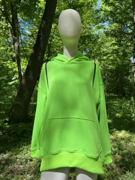 Vă prezentăm cea mai versatilă piesă pentru garderoba dvs.: hanorac rochie. Acest articol de îmbrăcăminte inovator combină confortul și stilul unui hanorac clasic cu un design unic. Fabricat cu o atențiela detalii si finisaje, are un fermoar cu deschidere dubla, care coboara de-a lungul spatelui special permițându-ți să-l transformi fără efort dintr-un hanorac confortabil într-o rochie inovativa.